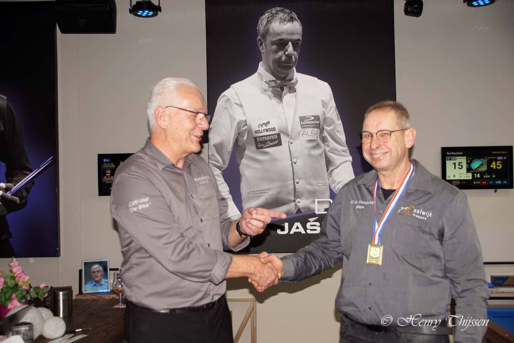 Van 28 t/m 30 november werd in Uden de districtsfinale Libre 3e klasse gespeeld. Na 1 avond en 2 dagen mocht Anthoine (die voor de 1e keer aan een PK meedeed) zich kampioen noemen. Dat hij in vorm was bleek wel uit zijn laatste partij, die hij moest winnen om de titel op te eisen. Zijn moyenne van 3.214 in die partij was er 1 uit het boekje. Dat hij daarbij ook nog een idool (niet alleen op de foto achter hem) mocht ontmoeten was de kers op de taart.